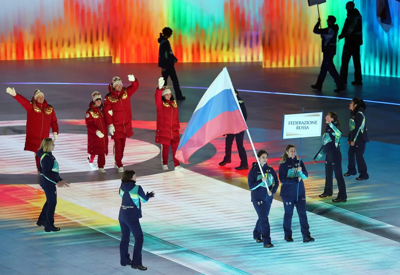 The Russian flag was displayed during the opening ceremony of the Paralympic Games on Friday for the first time since 2014. The International Paralympic Committee (IPC) reversed an earlier decision that banned Russia from competing in the Games, eventually allowing six Russian athletes to participate under their national flag and anthem. As a result, seven countries boycotted Friday’s opening ceremony in Verona in protest, including the Czech Republic, Estonia, Finland, Latvia, Lithuania, Poland, and Ukraine. IPC President Andrew Parsons justified the Committee’s decision to allow Russia to compete, saying, “In a world where some countries are better known by the names of their leaders, I prefer to know the countries by the name of their athletes.” (photo: Luke Hales / Getty Images)