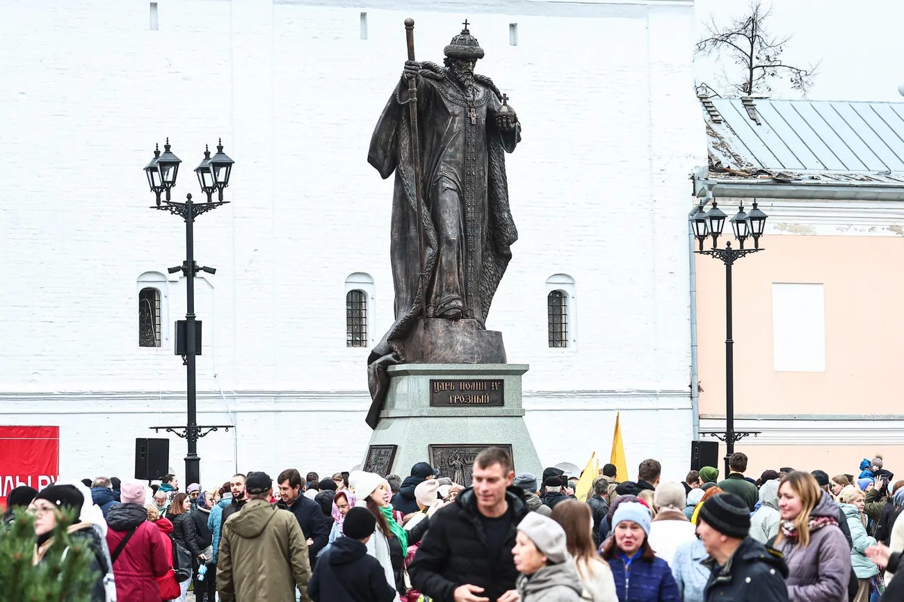 Russians celebrated National Unity Day on November 4 with public events across the country. One such event, in Vologda, included the unveiling of a new statue of Ivan the Terrible erected in the city’s Kremlin Square. The monument was commissioned at the initiative of Vologda Governor Georgy Filimonov, who called the infamous tsar a “cultural and symbolic marker of Vologda,” and a “conqueror-king in the best sense of the word.” Last year, Filimonov installed a monument to Soviet dictator Joseph Stalin in Vologda, near a house where Stalin briefly lived. Although Filimonov claimed that the statue was inspired by “appeals from the public,” it also faced backlash from local residents. (photo: Daniil Zinchenko / TASS / ZUMA Press / Scanpix / LETA)